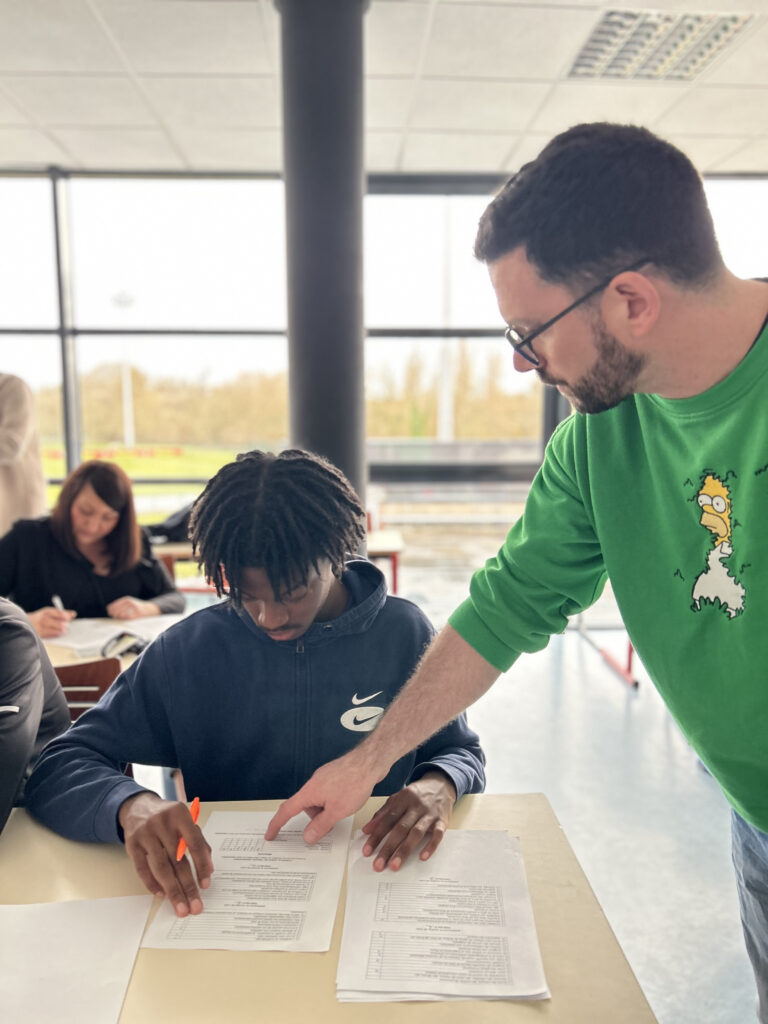 Le 26 février 2025, nous étions à La Gaillette Gervais Martel, le centre d’entraînement du RC Lens, pour rencontrer les U19 Sang et Or. Cette rencontre s’inscrit dans le cadre d’une co-construction de carrières professionnelles avec le club : proposer aux jeunes des solutions concrètes pour leur avenir, qu’ils deviennent professionnels ou qu’ils choisissent une autre voie.